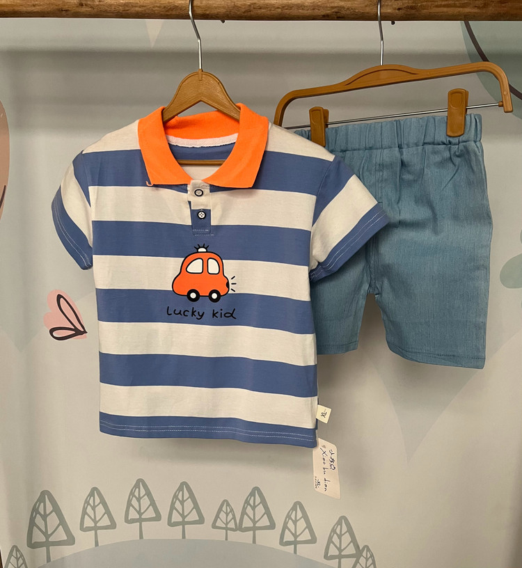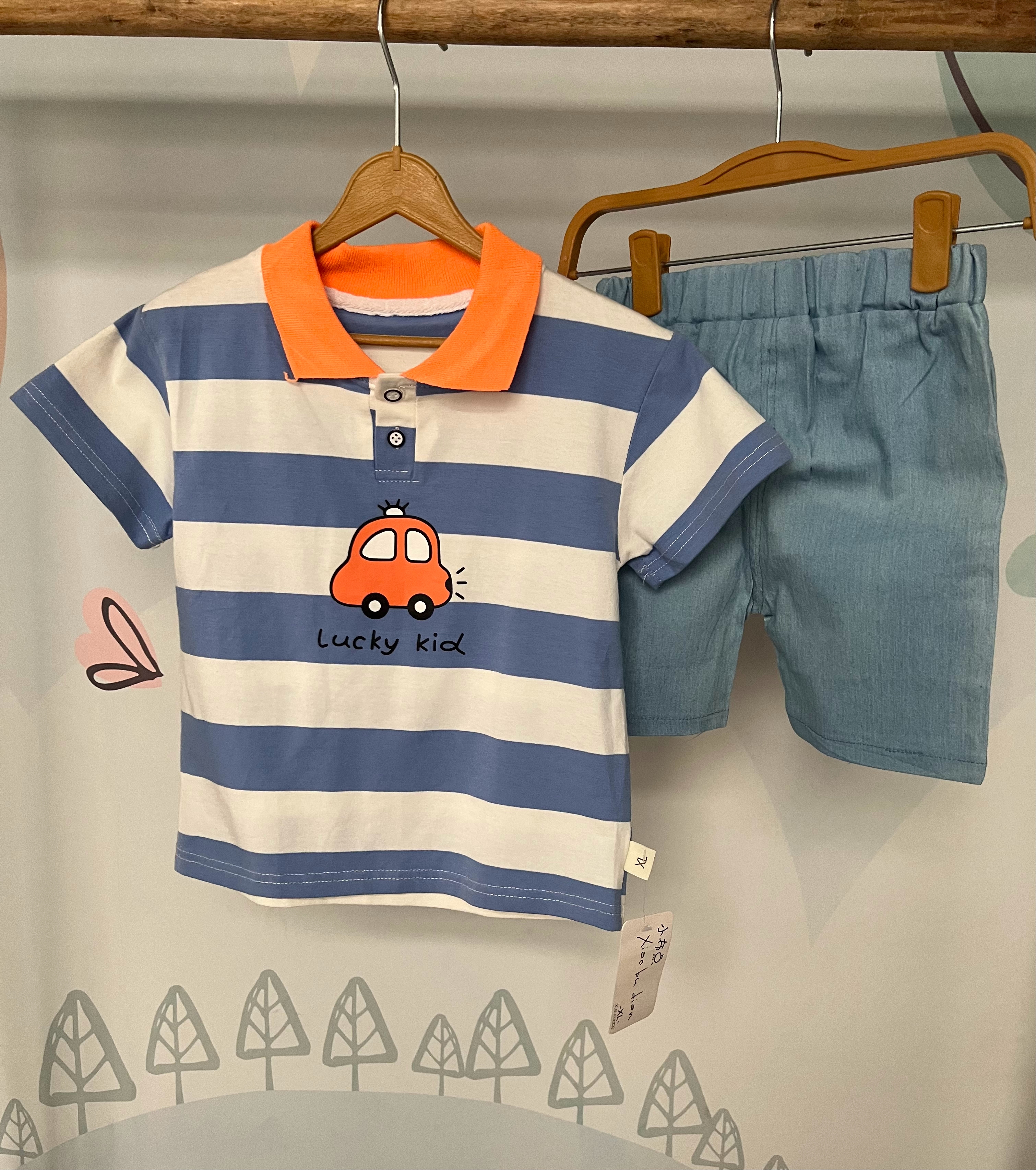 تیشرت یقه دار و شلوارک بچگانه پسرانه طرح ماشین وارداتی