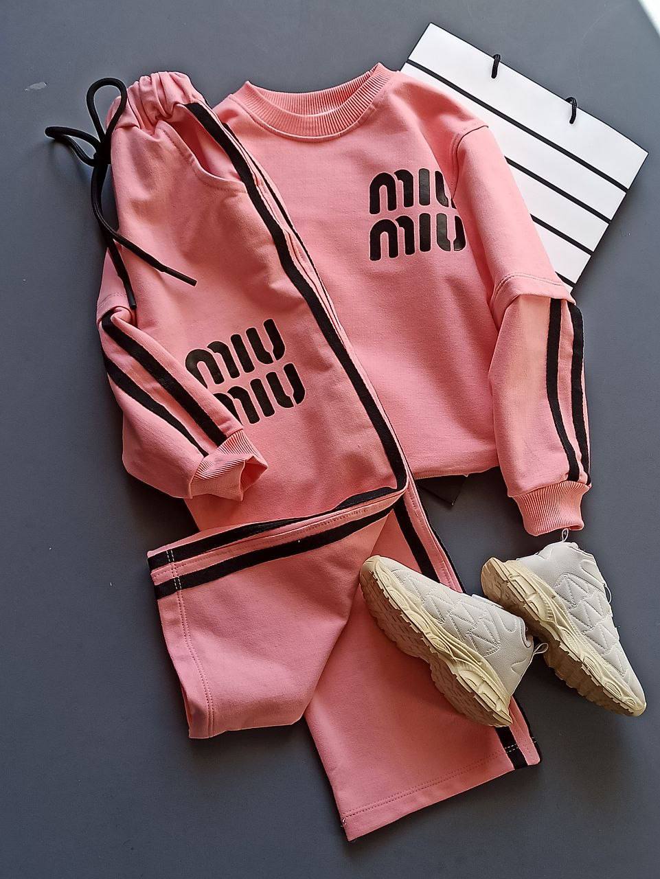 بلوز شلوار بچگانه اسپرت طرح میو جنس دورس دو نخ لاکرا