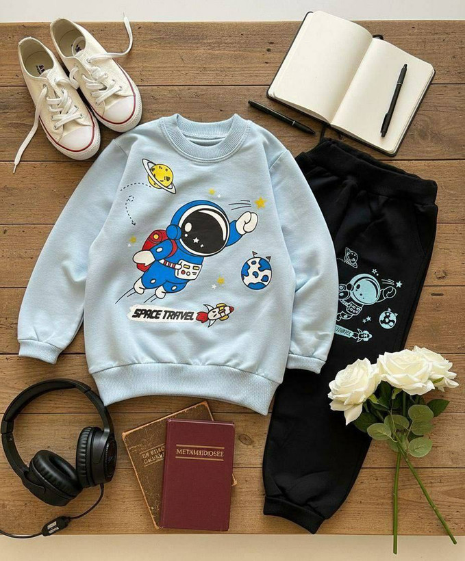 بلوز شلوار بچگانه پسرانه فضانورد جنس پنبه لاکرا