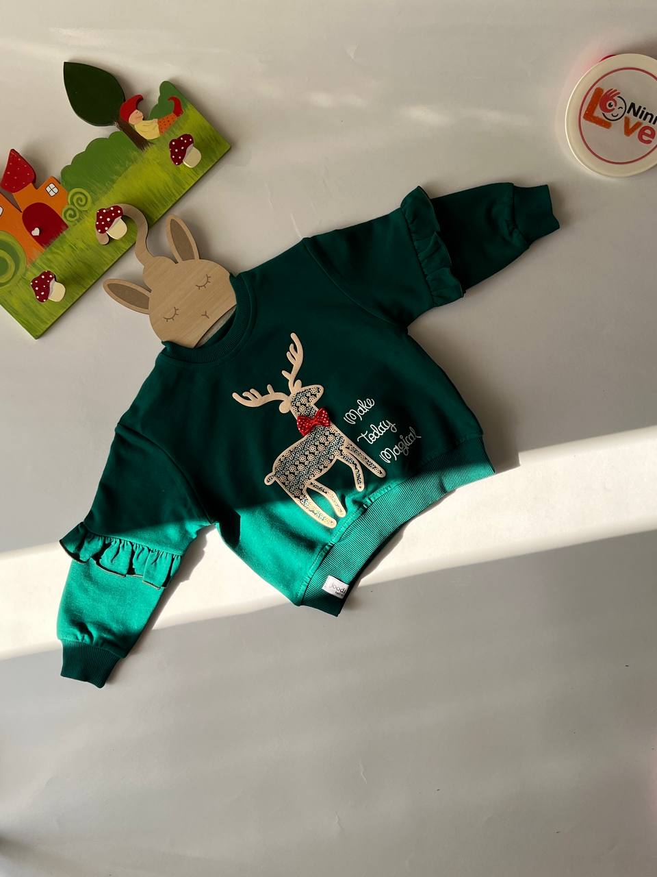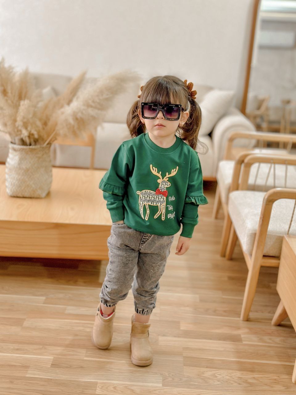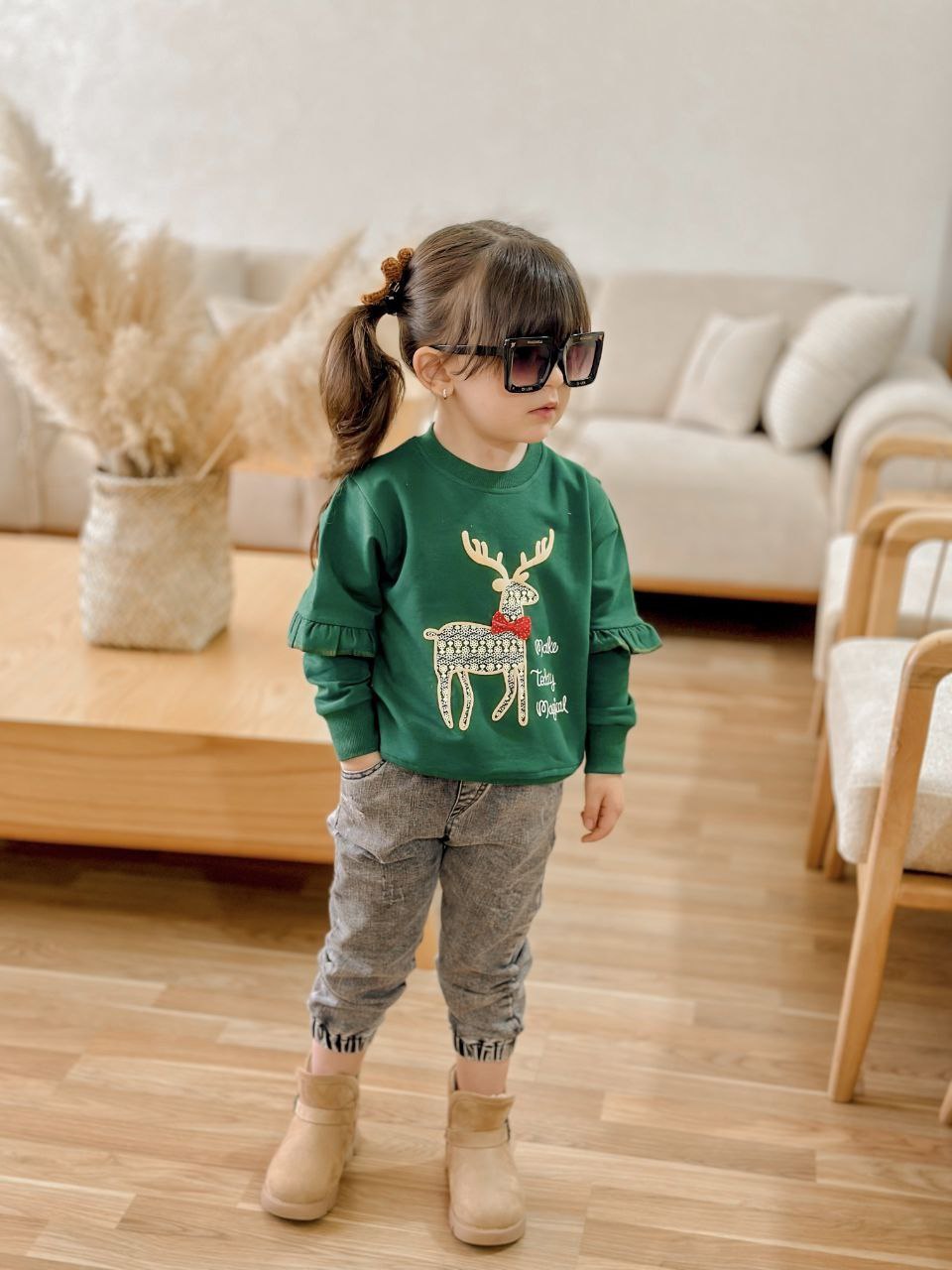 بلوز بچگانه دخترانه طرح گوزن جنس دورس پنبه