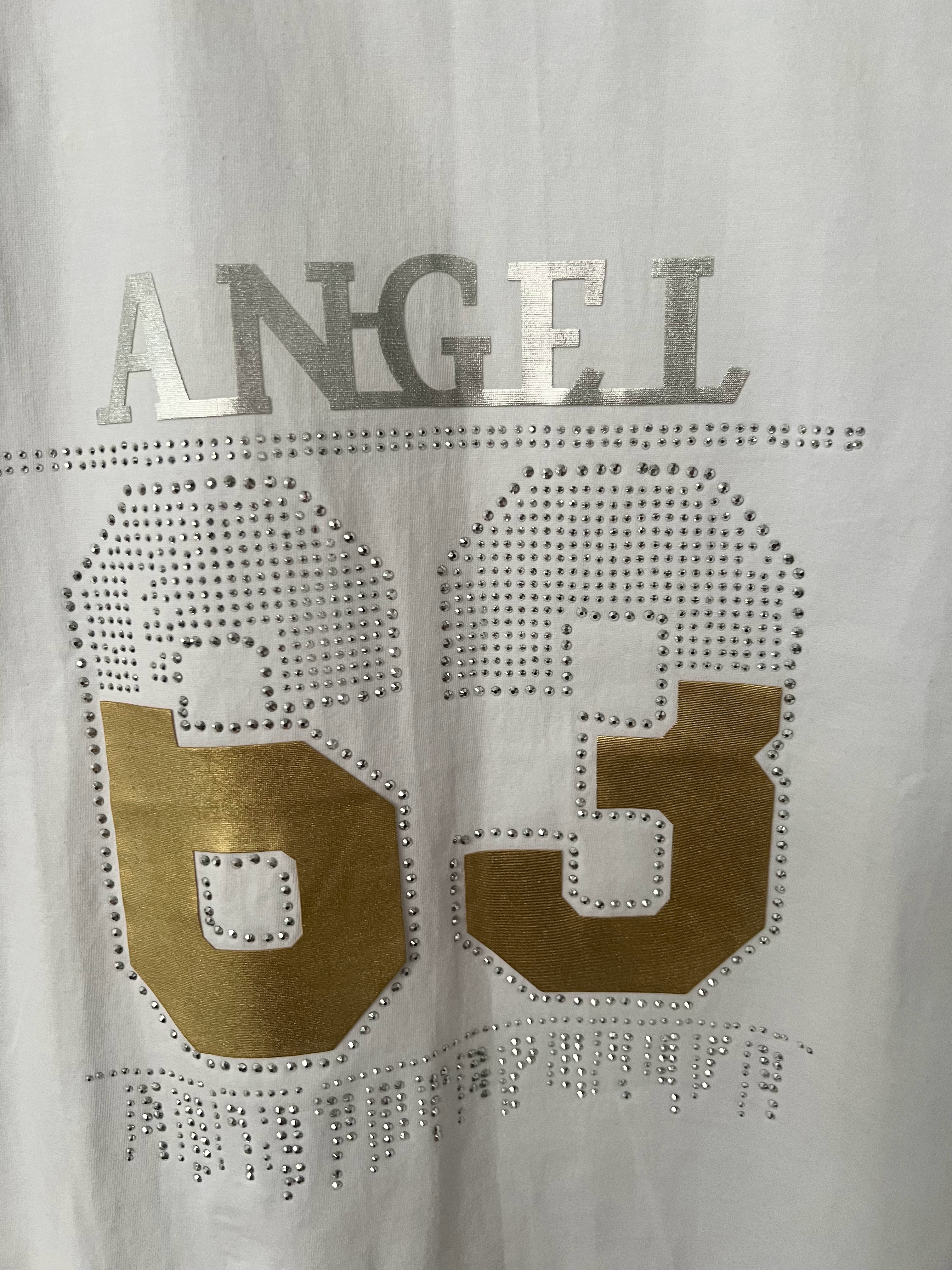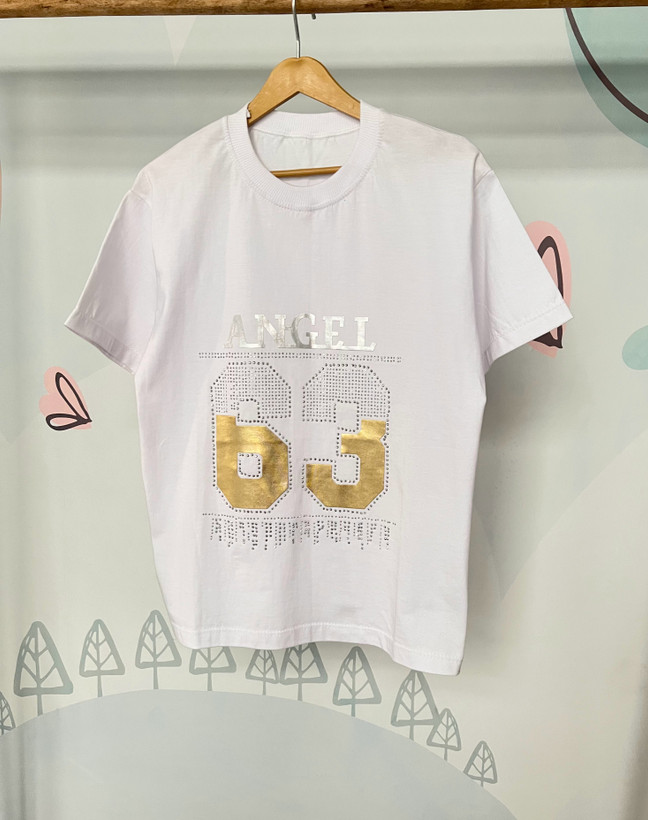 تیشرت تک بچگانه دخترانه رنگ سفید طرح آنجل جنس نخ پنبه