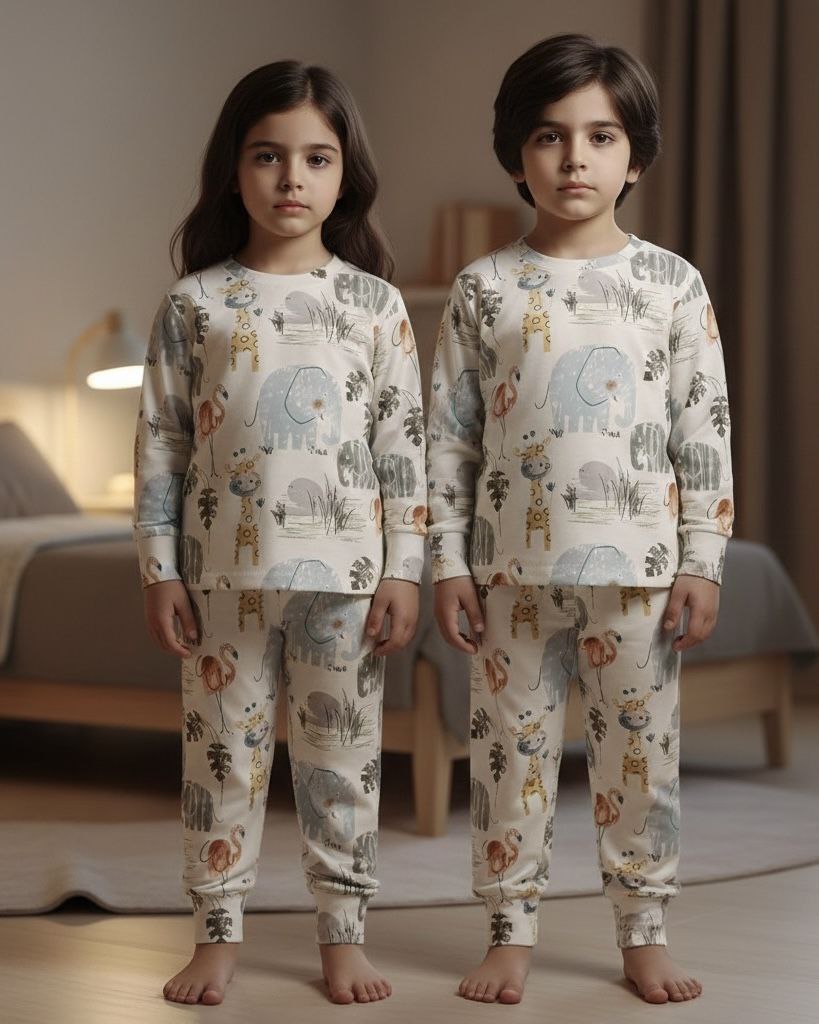 بلوز و شلوار بچگانه اسپرت طرح باغ وحش جنس نخ پنبه