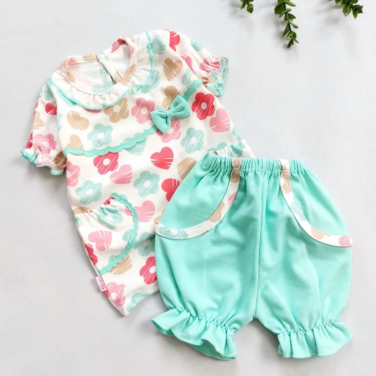 تیشرت شلوارک بچگانه دخترانه طرح گل و قلب جنس نخ پنبه