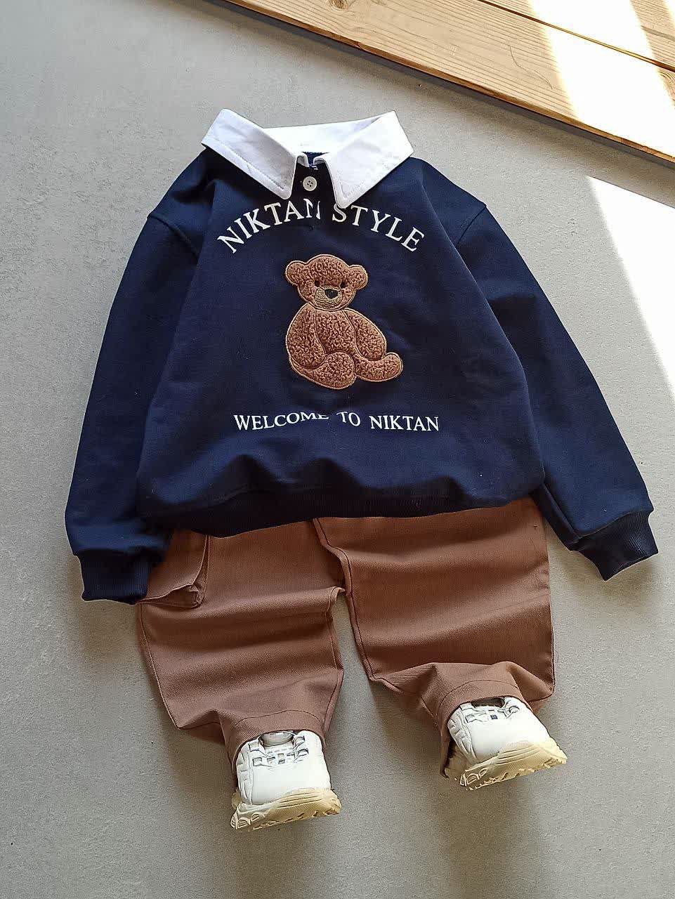 بلوز شلوار بچگانه پسرانه طرح تدی جنس دورس پنبه و کتان